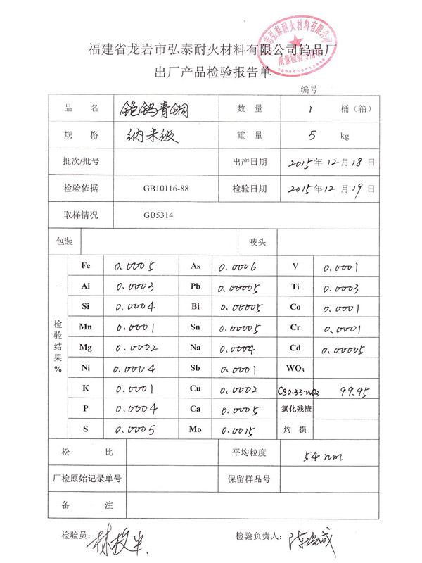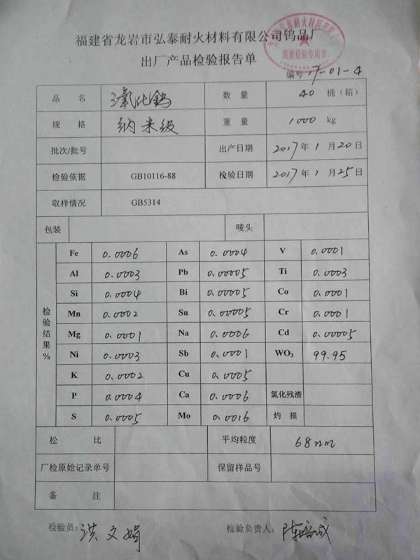三氧化鎢檢測報告20170120